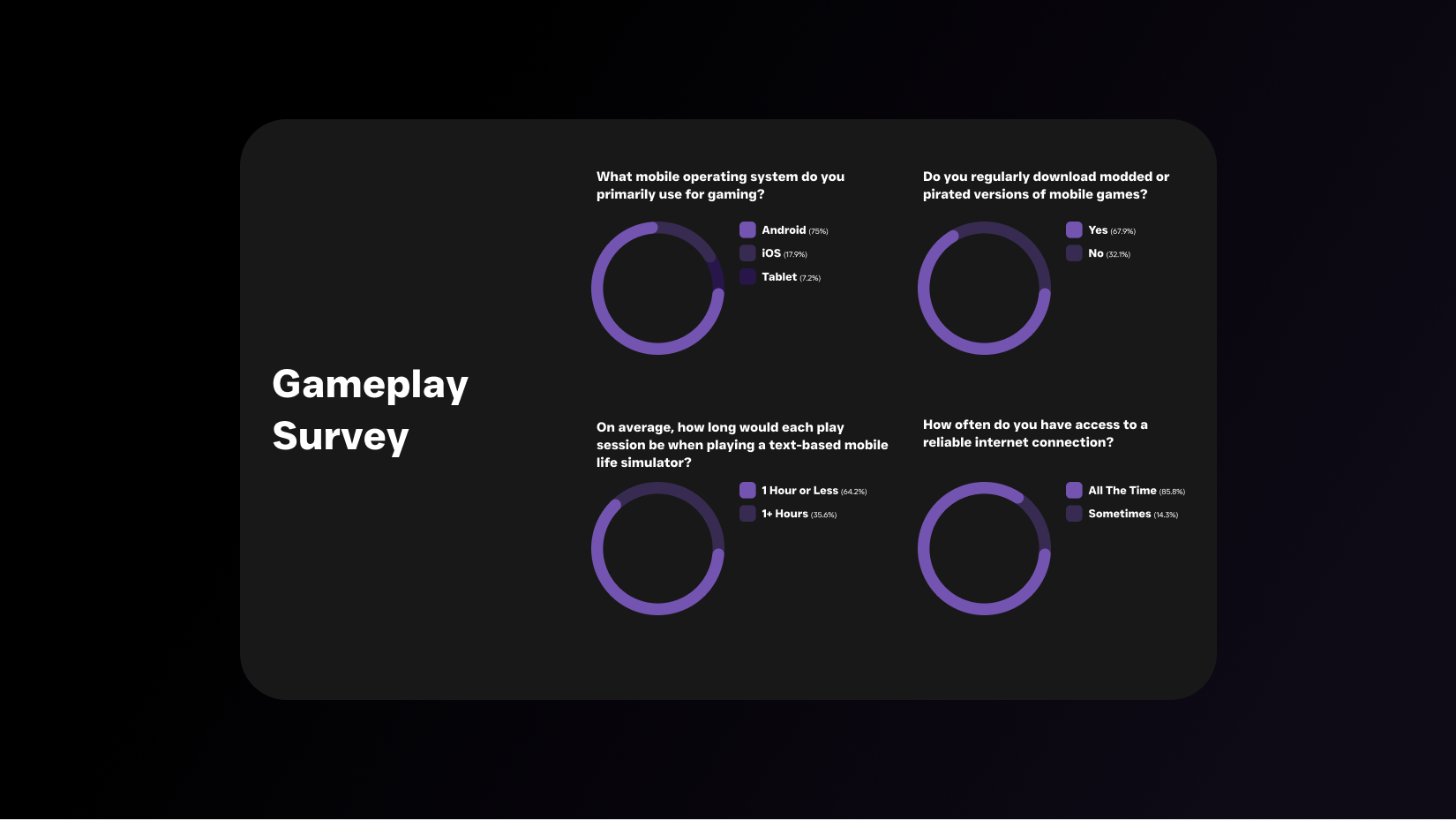 In short, I must create a mobile text-based life simulator that solidifies itself within the market as a high quality, easy to use and more financially accessible alternative to Bitlife and other comparable games.