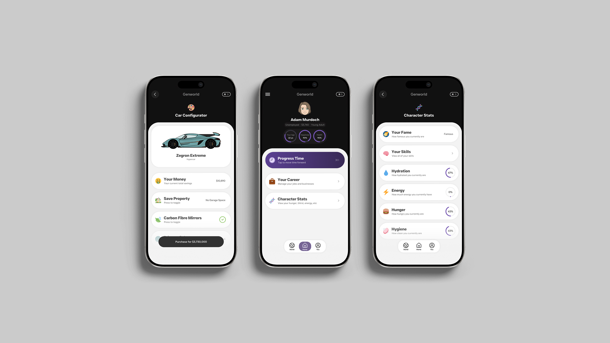Genworld is a super fun mobile life simulator passionately crafted with rich, standard-setting detail. Live a fictional life with greater realism and minimal paywalls, all without sacrificing the intuitive user-centric design you come to expect. This brand new life simulator entry is player-focused, ethically monetised, and detail-packed, making it the perfect life sim for those seeking an accessible yet fully featured alternative.